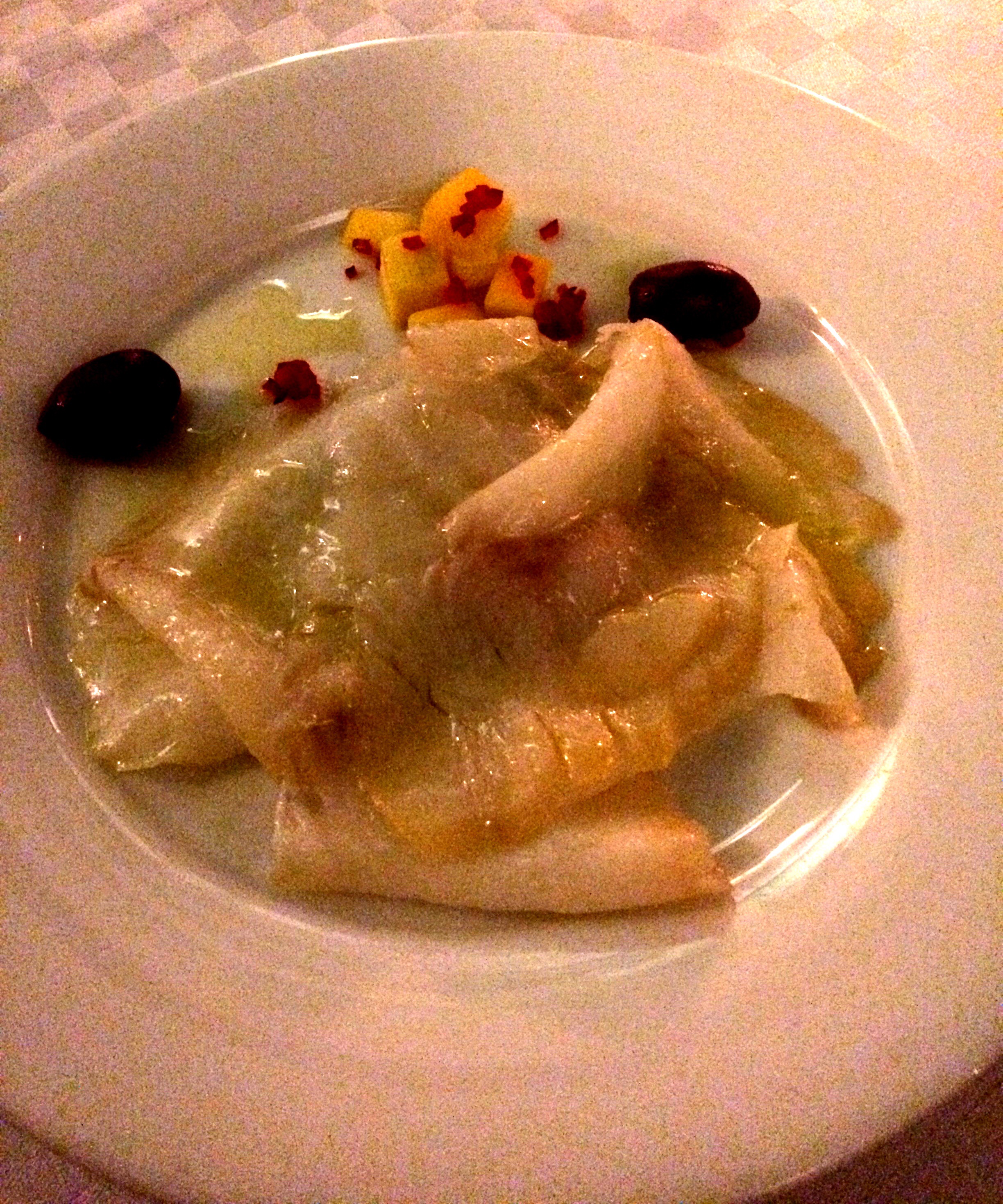 The only word I didn’t really know was what turned out to be grouper. As I love that fish, I decided to get their grouper carpaccio. A few minutes later, another server told me that wasn’t available now but they had a smoked version instead.
